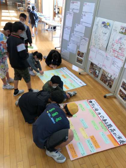 各チームごとに、明日の発表に向けてみんなに伝えるメッセージを書き、模造紙に貼りました。いよいよ明日は本番です。子供たちの演奏を、どうぞお楽しみください。