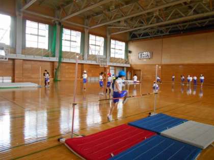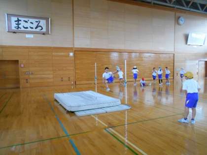 今日の4年生の体育は、それぞれに違う活動をしました。体育館では、走り高跳びに挑戦です。上手にバーを跳び越していきます。