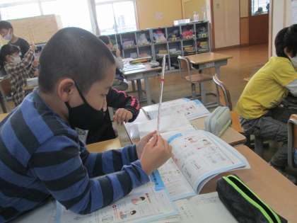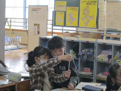 初めてデジタルではない温度計に触れた子供たちです。使い方をしっかり確認しました。明日の実験に使います。