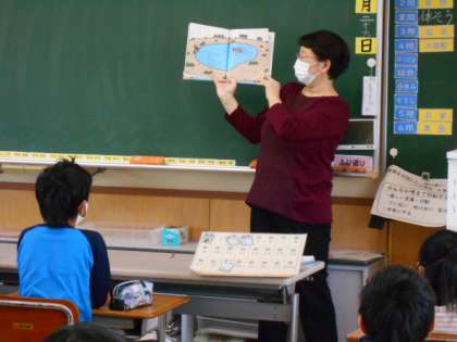 読み聞かせでは、ボランティアの方々が毎回子供たちに楽しんでもらえるよう、いろいろなお話を用意してくださっています。