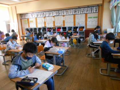 家庭学習チャレンジ週間での取組の成果を試す宮野っ子検定を行いました。子供たちは、前回よりも点数アップを目指して真剣に取り組んでいました。