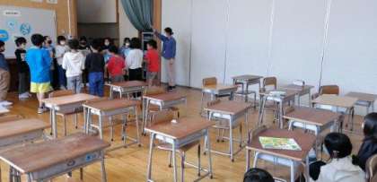 日本一の山「ふじ山」の歌を歌いました。歌詞や曲の感じから、どこを盛り上げて歌えばよいか考えました。半分に分かれて練習し、聴き合いました。