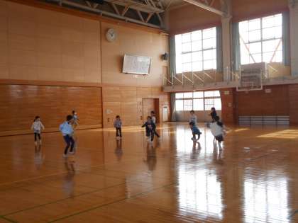 業間や昼休みに体育館や多目的教室で遊ぶことができる日があります。今日は、体育館で遊ぶことができました。ボールをドリブルしてみたり、鬼ごっこをしたりして楽しく遊ぶことができました。