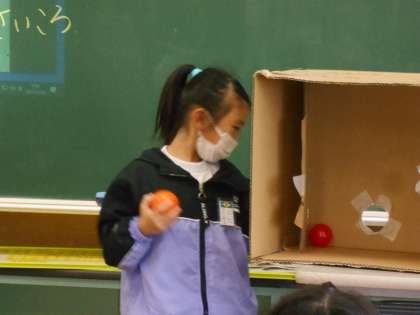 かたちをにているものに分けてから、どんな形なのかを手探りであてました。難しい問題もありましたが、特徴を手で感じて正解を出していました。