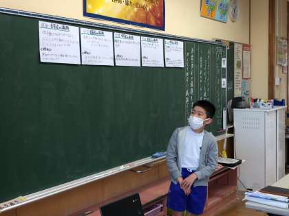 国語科の学習で、各委員会のスローガン達成に向けて話し合いをします。今日は、みんなで話し合う議題を決めました。
