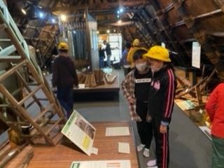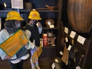 民俗民芸村の民俗資料館での様子です。昔のくらしに使われていた道具をたくさん見てきました。