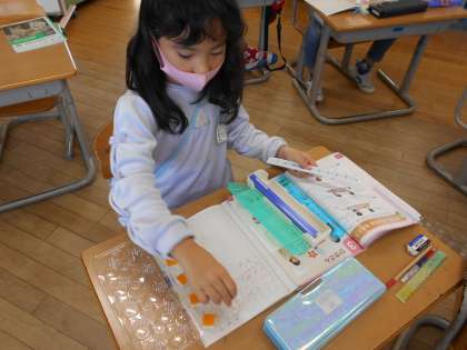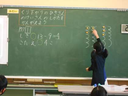 繰り下がりのあるひき算の学習が始まりました。13−9の計算の仕方を考えました。