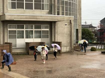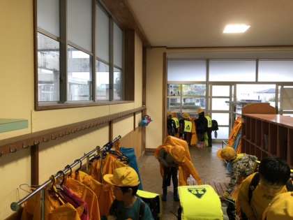 昨日とは一転して雨の朝を迎えました。ズックで登校した子供たちの中には、靴下がびしょびしょになってしまった子もいたようです。カッパを脱いでかけ、教室に向かいます。