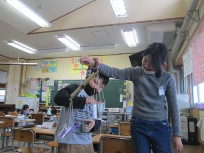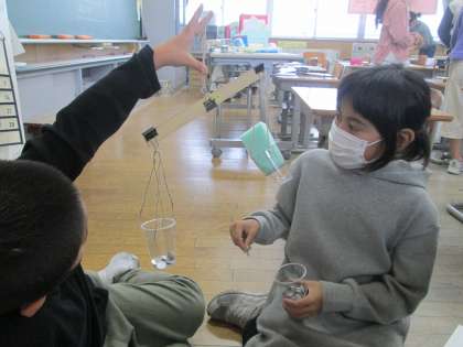 昨日はてんびんに比べるものをのせてどちらが重いのか比べました。今日は1円玉何個分かを出して比べる方法を試してみました。昨日の方法と比べて、〇個分と数で表せるほうが分かりやすいと数値化するよさを感じていた子供たちです。