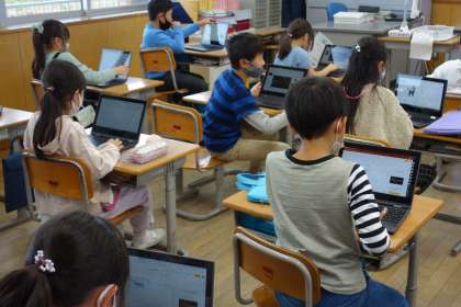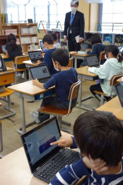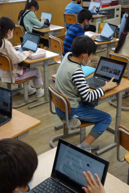 ICT支援員さんの協力を得ながら、スライド作りの基本を学びました。要領を掴むと次々とスライドを作る子供たちの姿が見られました。様々な学習で使えそうですね。