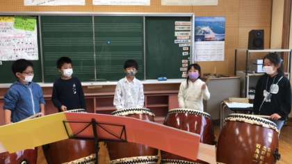 グループごとに、おまつりの音楽をつくって練習しています。最初は、うまくできず悩んでいた子供たちも、今日は、「かっこよくなってきた!」「みんなでそろったよ!」と嬉しそうに練習していました。さすが、宮野の子供たち。和太鼓をしてきた経験が生かされています。発表会が楽しみです。