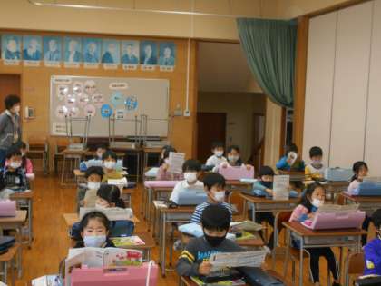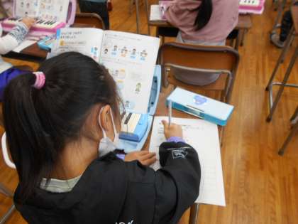 今月の歌「ビリーブ」の練習をフレーズごとにしています。朝、歌っていますか、難しいのでなかなか音程がとれないことがあります。音楽室で練習するときれいな歌声が響きます。そのあとに、「せんりつをつなげてあそびましょう」をしました。4拍子のリズムに合わせてドレミファソの音をつなげていきます。鍵盤ハーモニカで音を確かめながら考えていました。