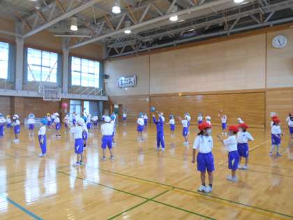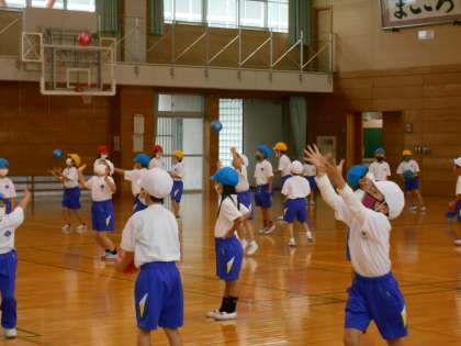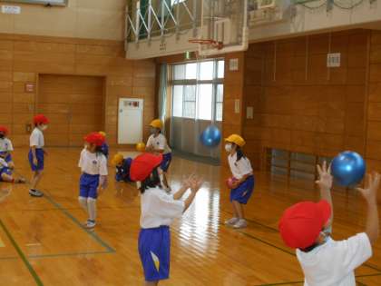 今回から、ボールを使った運動を始めました。最初は、上に向かって投げたボールをしっかりとキャッチすることを練習しました。そして、ボールが宙に浮いている間に拍手をしてからキャッチする練習をしました。ボールの投げる方向や高さを考えながら取り組んでいました。