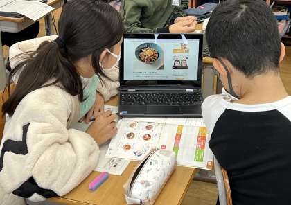 家庭科の学習では、一人一人が自分で1食分の献立を立てました。今回立てた献立をもとに、主菜となるおかずを調理実習します。