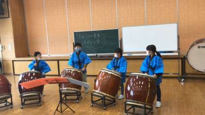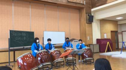 今日は、グループごとにつくったおまつりの音楽を発表しました。和太鼓が苦手だと言っていた子供も、「楽しかった。またやりたいです!」と友達に伝えていました。協力して音楽をつくりあげる楽しさや達成感を感じられたようで、子供たちの生き生きとした顔が見られました。
