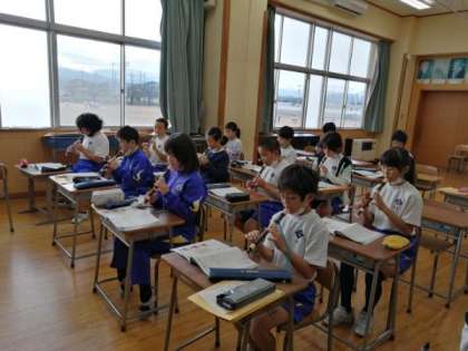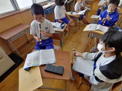 今日は、高音を美しく出す練習を行い、友達と聴き合いました。リコーダー演奏に自信をもち始めている4年生です。