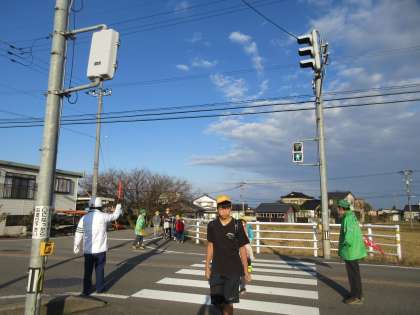 お天気はよいのですが、寒い朝。交通指導の皆さん、ありがとうございます。