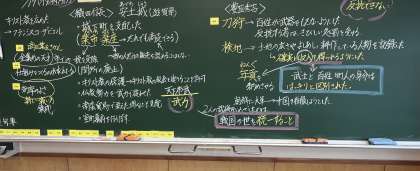 社会科では、単元の復習として、織田信長と豊臣秀吉が行ったことについて整理しました。その後、それぞれの政策や人柄の特徴を自分たちの言葉で表現しました。
