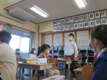 主人公のおじいさんの気持ちの変化を考えました。友達の意見も真剣に聞いています。