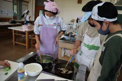 理科「音について」、家庭科「今日の食事はまかせて」の学習の様子です。とってもおいしそうな一品ができました。「家でも練習してきたんだ」と嬉しそうに教えてくれました。