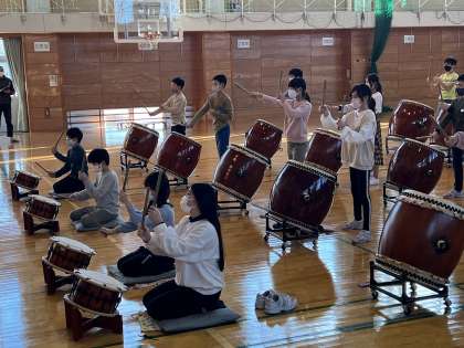 今日は、講師の先生に和太鼓の指導をしていただきました。