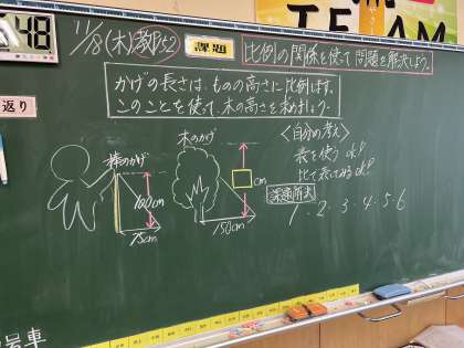 算数科では、これまで学習したことを生かして、比例の関係を使った練習問題に取り組みました。