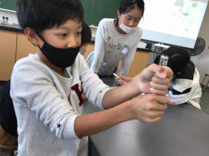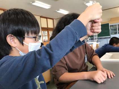 空気の体積は温めたり冷やしたりするとどうなるか実験を行いました。