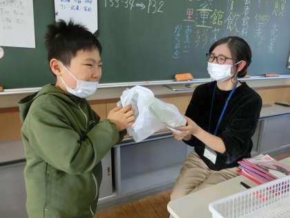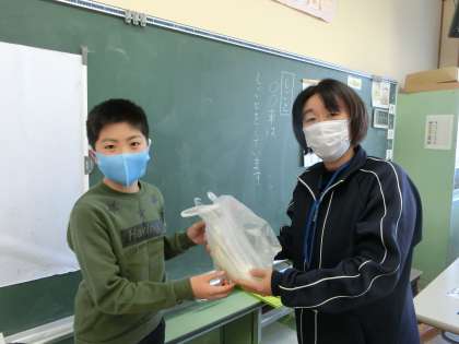 今日も、あおぞら畑で収穫した大根を校内の先生方にプレゼントしました。ほとんどの先生方にプレゼントし終えました。「ありがとう」と言われて、子供たちはにこにこでした。