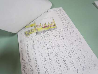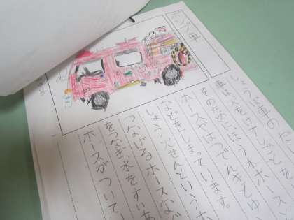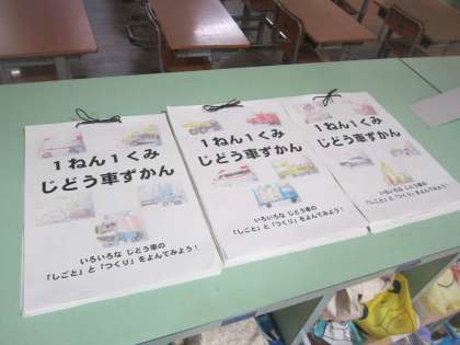 「じどう車くらべ」の学習を生かして、「じどう車ずかん」を作りました。じどう車の「しごと」と「つくり」をしっかりと書くことができました。また、読む人のことを考えて、丁寧に書きました。早速、友達が書いた図鑑を休み時間に読んでいる子がいました。2組さんも、もうすぐできあがります!
