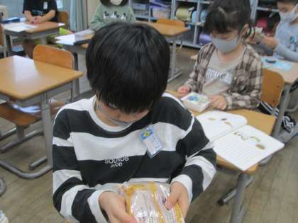 国語科で「すがたをかえる大豆」という説明文を読み進めています。実際の大豆と大豆がすがたを変えているものを比べてみました。