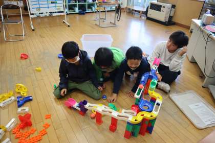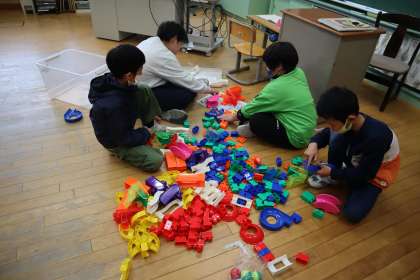 自立活動「レッツ チャレンジ のぞみリンピック」でなかよしポイントを200ポイント集めることができたので、がんばったね会をみんなでしました。「コロコロコロガーレ」で遊びました。みんなで協力すると、とても大きなコースターができました。「次は、もっと長くしたいな。」とやる気いっぱいの子どもたちです。