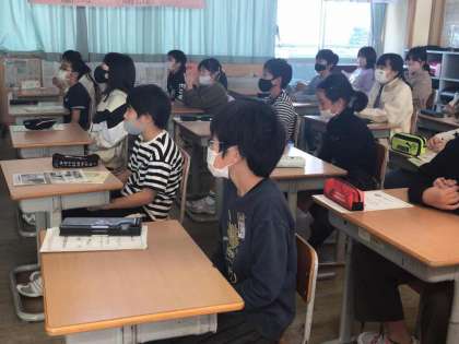 環境チャレンジ10の講師の方に地球温暖化についての授業を受けました。自分達にできる環境のためにできることは何か振り返りで考えていました。