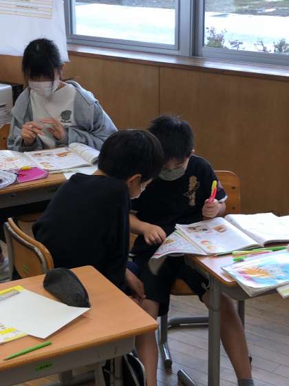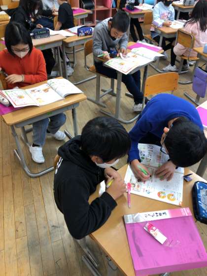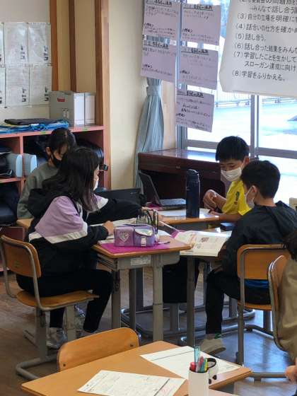 調理実習を終えた子供たちは、これから家族のためにみそ汁の実を考えます。その前に…栄養素の学習です。互いに問題を出し合いながら、どの食品がどの栄養素なのかについて理解しました。