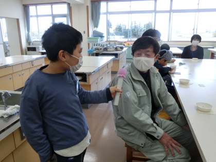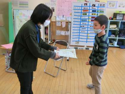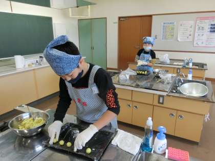 春に苗を植え、秋に収穫したサツマイモを使って、今日、サツマイモパーティーをしました。招待状をお世話澪待っている先生方にもっていき、作ったおやつを一緒に食べました。「おいしい」と言っていただけてとてもうれしそうな子供たちでした。