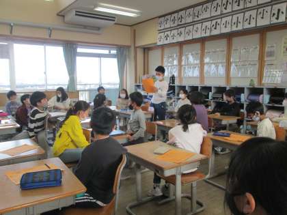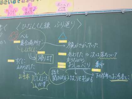 自衛消防訓練が終わったあと、教室で振り返りを行いました。よかった点も反省点も次にいかそうとしっかりと振り返っていました。