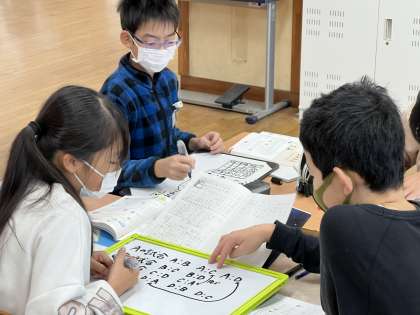 算数科の学習では、落ちや重なりなく組み合わせを調べる方法について考え、グループで話し合いました。