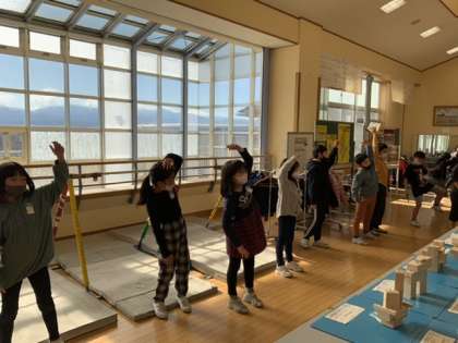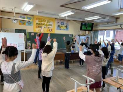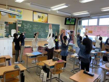 業間に行っている体力つくり活動。今日はラジオ体操第2を全校で行いました。