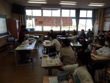 外国語科の学習では、外国の食文化や、「パン」や「アルバイト」などの言葉はどこの国から来たものなのかなどを学びました。インドのとある地域では、手を使ってカレーを食べることを知ってびっくりしている子供たちでした。