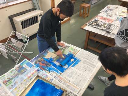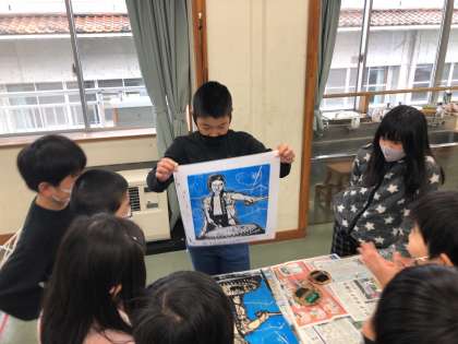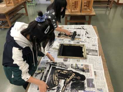 子供たちが一生懸命彫り進めてきた版画の印刷を行いました。