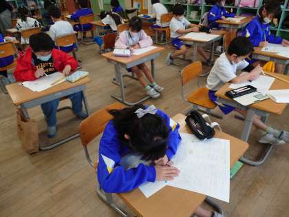 今日は算数の期末テストです。 あともう少しで冬休みですね。