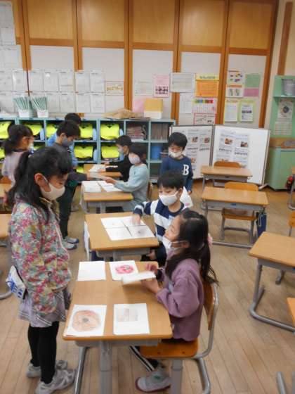 看板や売りたいものを絵に描き、お店屋さんごっごを楽しみました。1つ1つの名前とまとめて付けた名前の学習が楽しかったようです。