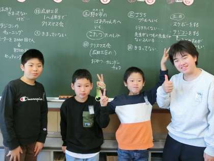 朝の会の風景です。あおぞら級とのぞみ級と一緒に朝の会を行っています。お話のテーマを日直が決めて、一人一人語っていきます。時々質問が出て、お話が広がっていくのが楽しいです。