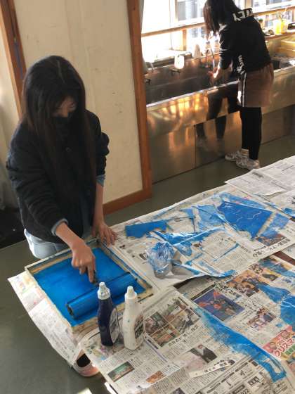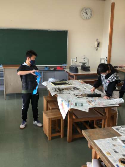 1組に続き、2組も版画を刷りました。出来栄えが上々だったようで、とても嬉しそうです。