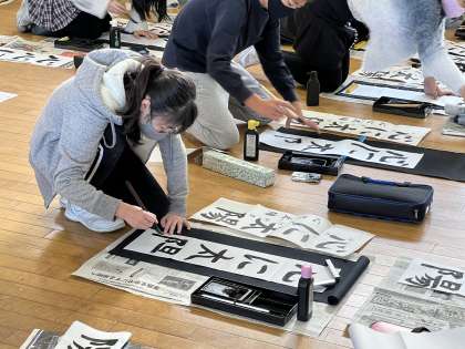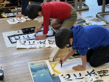 書写の学習では、書初用紙に2回目の練習を行いました。