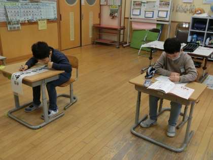 書写の時間の風景と自立活動の風景です。「がんばれ」「いいよ」と温かい言葉が飛び交いうれしい気持ちになる時間でした。