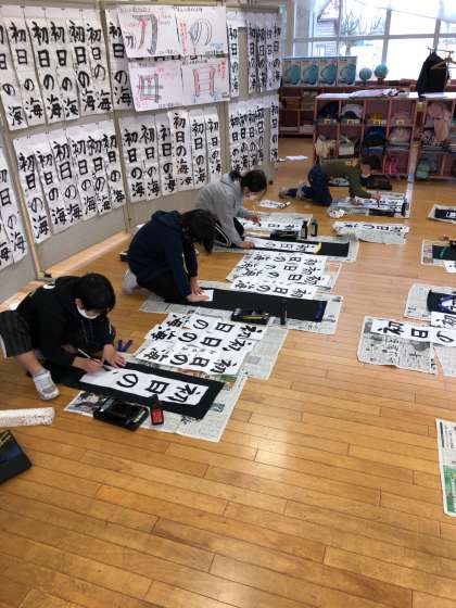 今日は3回目の書き初めの練習でした。意識できるポイントが増えてきており、今までの作品よりも美しい字が書けるようになってきました。学校での練習は残り1回です。より美しい字が書けるように練習を積み重ねていきましょう。