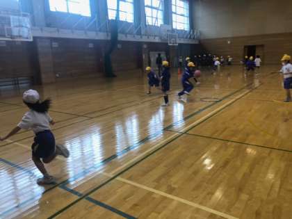 子供たちは、ルールを理解し、攻めと守りに分かれて楽しく活動しています。
