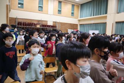 歌に合わせてノリノリで体を動かしたり、影絵のお話を聞いたりしてとても楽しい時間を過ごしました。