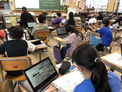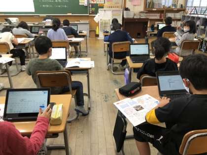クロームブックを使って調べてノートにまとめています。