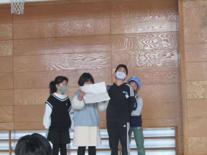 おにごっこの様子です。クリスマス会なので、鬼は帽子をかぶる「クリスマスおにごっこ」です。